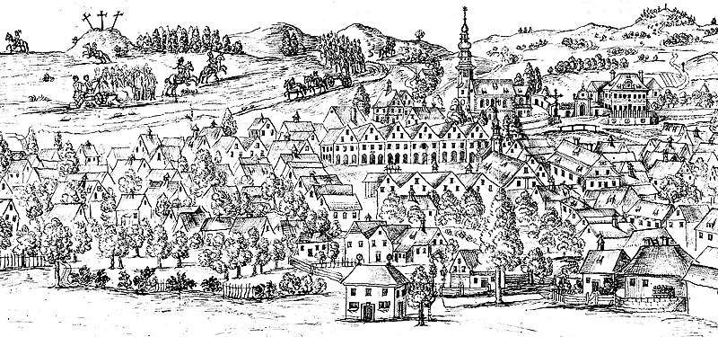 Anonym: Chrastava kolem roku 1750 (zdroj: Městské muzeum Chrastava, licence: Wiki Commons)